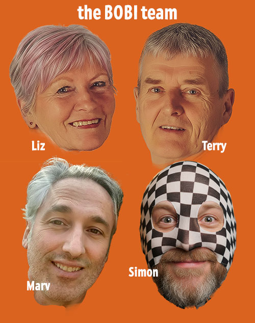 The BOBI team are all volunteers, currently made up of: Marv Gadgie, who edits the BOBI fanzine Penny Dreadful (available at each gig) as well as his own fanzine Gadgie, and has been a promoter of (mainly) punk gigs in the past; Simon Barnabas of Tiny Forehead who was the mastermind behind BOBI and currently books the bands; the Hedgehog Reality duo of Liz Martin and Terry Martin, who is also co-founder of the Uncovered network, responsible for coding the websites and also DJs at the gigs and looks after the sound. We do this because we have a passion for original music and want to give original musicians another venue where they can play (and receive some recompense for their creativity) and somewhere where discerning audiences can watch something new in a friendly and safe environment. Thank you for supporting us. Without you we cannot make BOBI a success. Please spread the word about what we are doing.